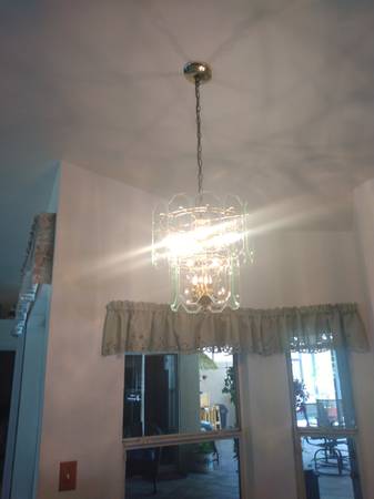 Beautiful 2 Tier Chandelier for sale. 15" wide x 15" high with a 24" chain. 8 bulbs included. Only $60.00