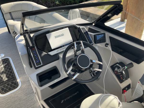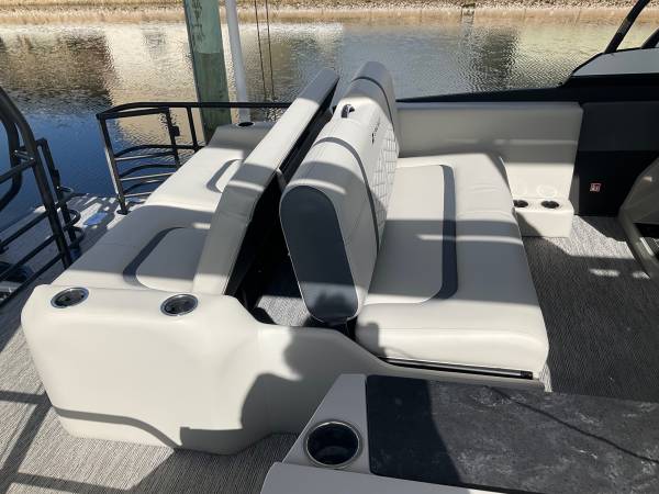 27' Center Tube with Center Tube Storage--Dual Raised Consoles --with Full Walk-Thru Windshield --custom Walk-Thru Curtain for Cold Weather --Booster Seats For Driver and Passenger -- Hydraulic Pedestal for Driver-- Optional 12 Volt Refrig. / Freezer under Rear Lounge Seat--Side Bar with Trash Container-- Intergraded Ski Tow-- Rear Lounge Seat that can be Configurated 5 Different Ways-- Has a Very Unique Power Arch / Power Canopy Combination -Deluxe Revo Lilly Pad Stairs into the Water---- Full DTS Contols with Full Simrad GPS and Navigation--this Pontoon WILL BE AVAILABLE THE LAST WEEK OF MARCH 2026 Boat can Be Viewed and Water Tested 7 Miles South of Punta Gorda Fl. on Burnt Store Road- -- Call Jack with Question 260 668-2740 -- Custon All Aluminum Trailer with Brakes and Guides Available for an Additional $ 5100.00 Pictures to Follow