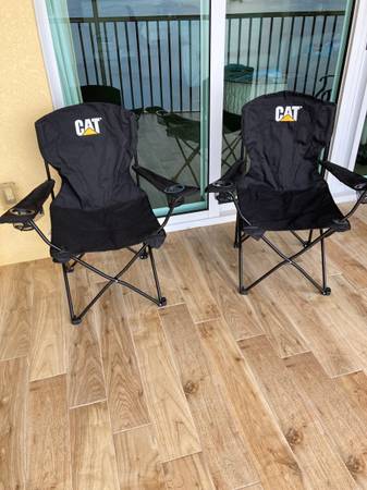 Genuine, high quality Caterpillar Corp Chairs with built-in drink holders. Very comfortable. Stored indoors only (no pets, no smoking) and in like-new condition. $50 for the pair (LESS THAN HALF...