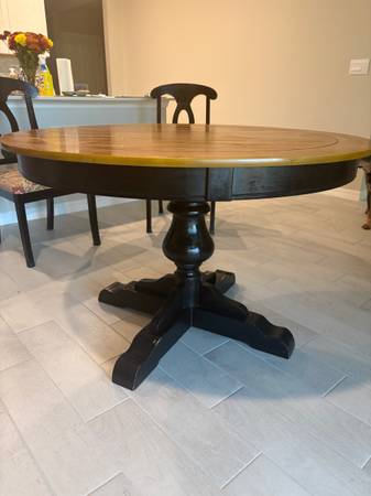 48” round dining table and 4 chairs- ($200) 30” tall, 48” in diameter. Very well built and sturdy. In great condition minus a few scuffs on the chairs and heat stains on the table! Must be able to...
