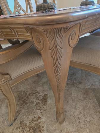 The cabinet itself was purchased new for nearly $900 itself and is not Bernhardt; table and chairs were purchased used, are genuine Bernhardt, and in very good condition. There's a bit of paint on the side of the table where it was pushed up against a wet wall by an irresponsible painter but it can probably be lightly sanded off.